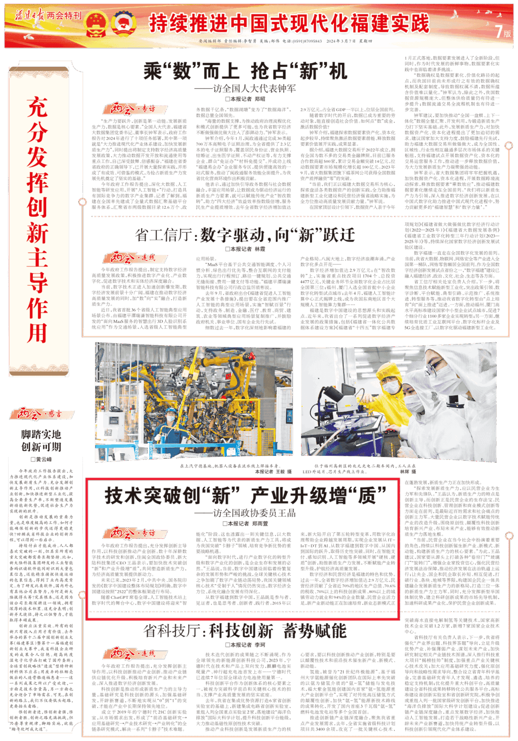 全國政協十四屆二次會議3月4日在京開幕 。第十四屆全國政協委員、新大陸科技集團CEO王晶積極履職獻策,引發媒體及社會各界廣泛關注。今日官微全文轉發福建日報報道《技術突破創“新” 產業升級增“質”——訪全國政協委員王晶》,以饗讀者。