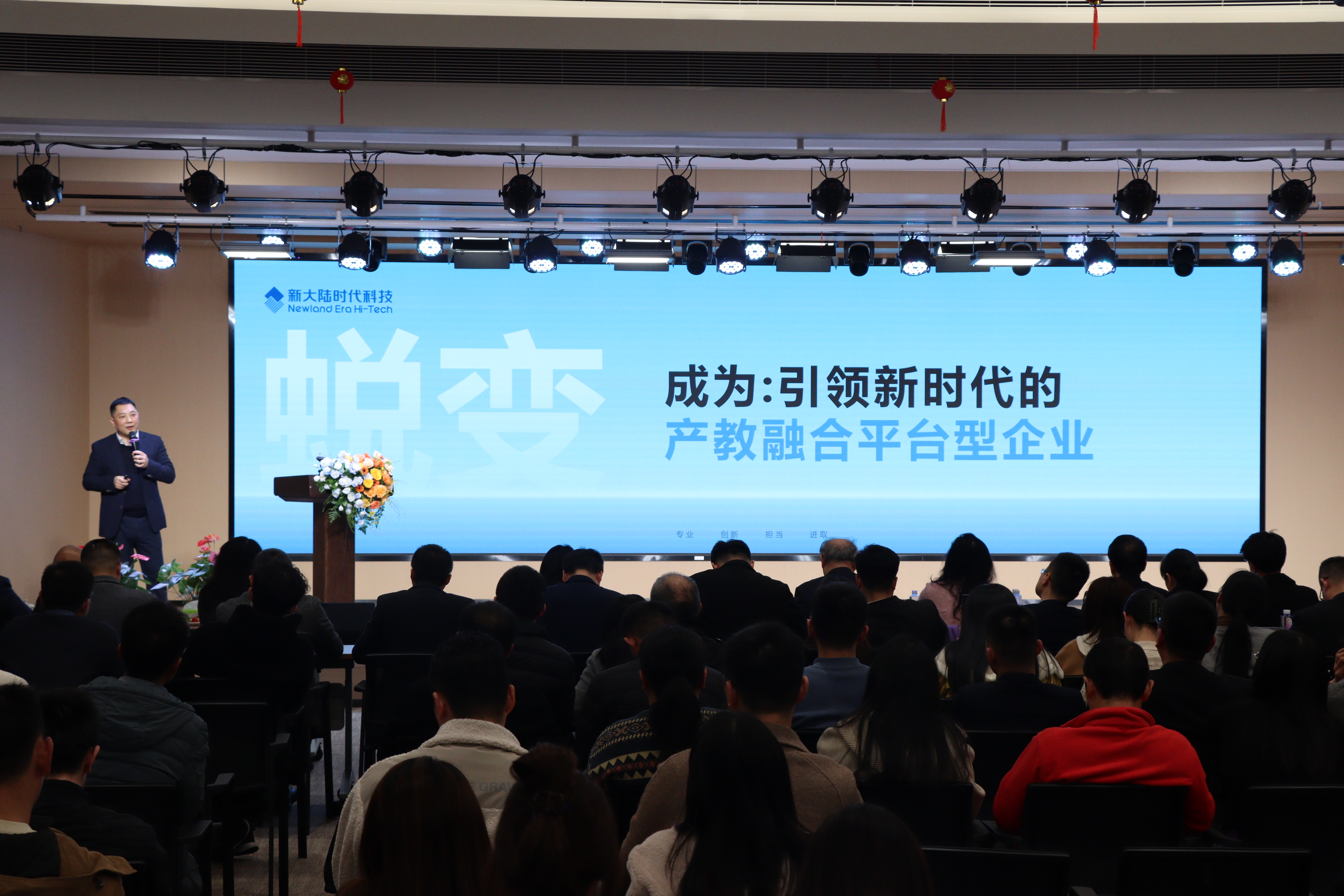 1月25日,新大陸時代科技2024年度總結(jié)暨2025年度計劃會在福州圓滿舉行。新大陸科技集團董事長胡鋼、總裁王晶、董事副總裁林學杰以及新大陸數(shù)字技術(shù)股份有限公司董事會秘書徐芳寧等親臨現(xiàn)場。大會以“重構(gòu) 蛻變 再出發(fā)”為主題,新大陸時代科技全體員工通過線上線下聯(lián)動之式,齊聚一堂,共襄盛舉,開啟公司發(fā)展新篇。
