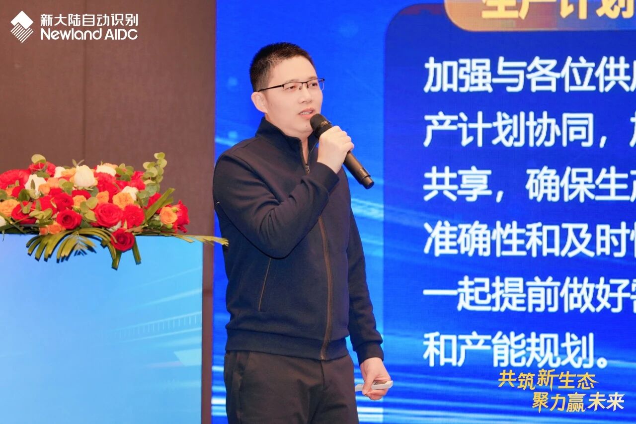在隨后的主題分享環(huán)節(jié),研發(fā)中心丁晟與陳猛藝圍繞“產(chǎn)品”、“技術(shù)”與“方案”,展開(kāi)深度解讀。從公司產(chǎn)品布局到2026計(jì)劃方向,從核心算法突破到行業(yè)解決方案分享,他們?cè)攲?shí)的數(shù)據(jù)與鮮活的案例,展現(xiàn)了新大陸自動(dòng)識(shí)別持續(xù)深耕AIDC行業(yè)的決心,也傳遞出對(duì)供應(yīng)鏈協(xié)同創(chuàng)新的更高期待。銷售部門(mén)謝金回顧過(guò)往合作基礎(chǔ),展望未來(lái)發(fā)展機(jī)遇,認(rèn)為唯有強(qiáng)化與供應(yīng)商們資源共享,實(shí)現(xiàn)相互賦能、才能共贏發(fā)展。